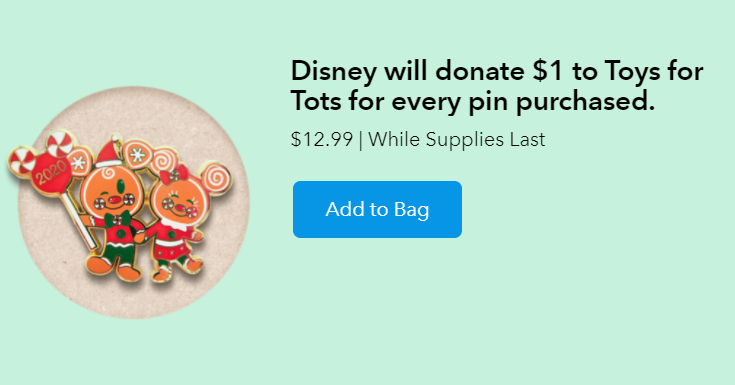 While you’re doing your Christmas shopping, make sure to pick out a pin, because for every pin purchased, Disney will donate $1 to Toys for Tots! This is a great way to support a wonderful charity while stocking up for the holiday season.