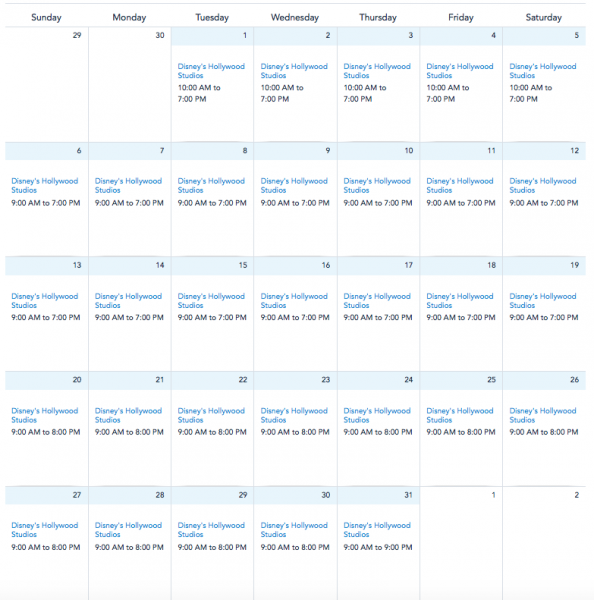 Disney’s Hollywood Studios also has some extended hours throughout the month.