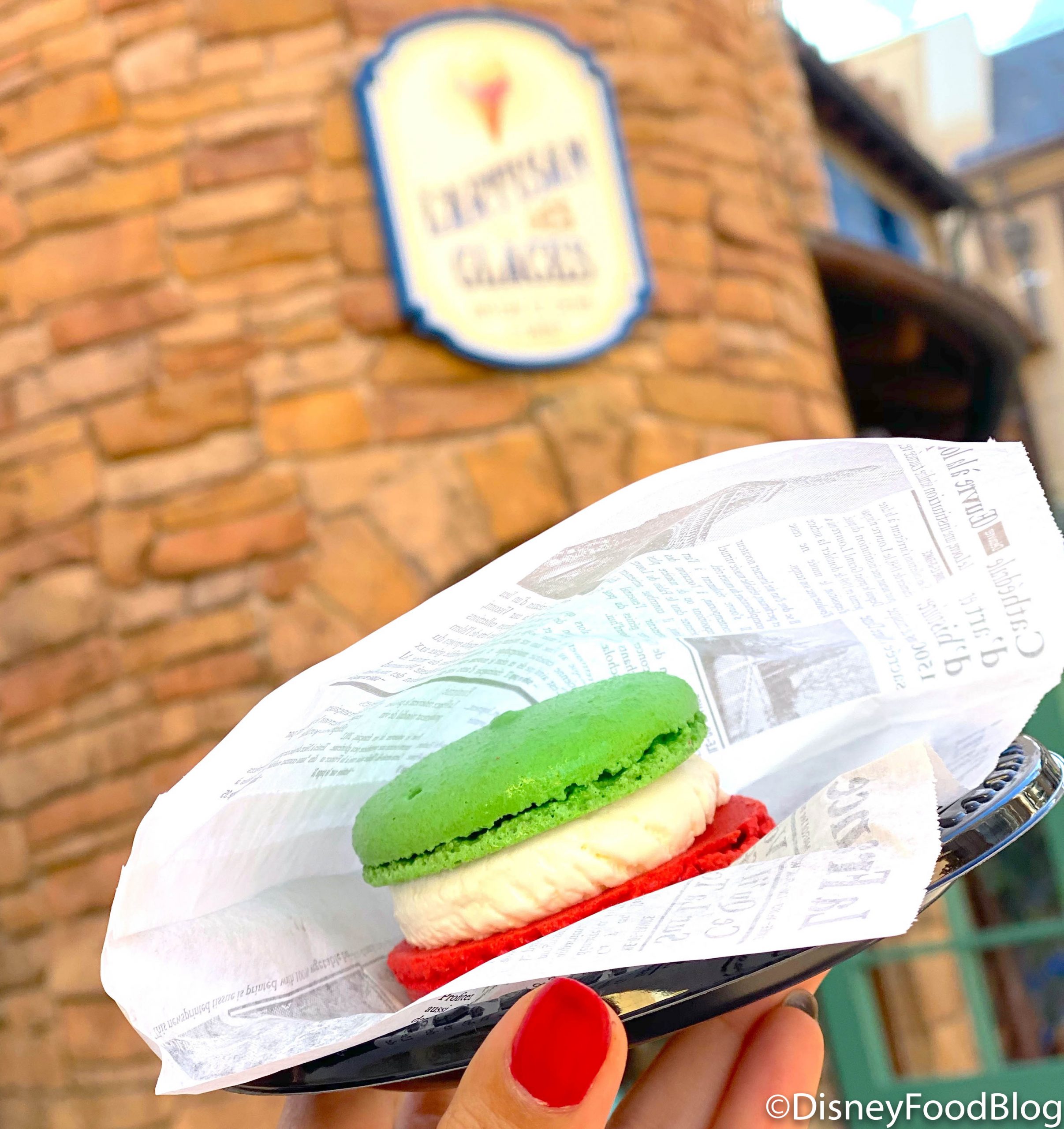 The Christmas Macaron Ice Cream Cookie Sandwich IS BACK, BBY! While we’ve seen the sandwich with red and green cookies and peppermint ice cream in year past (if you weren’t feeling festive enough in Disney World already), we’re happy to see it return to the parks again for the holiday season!