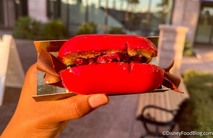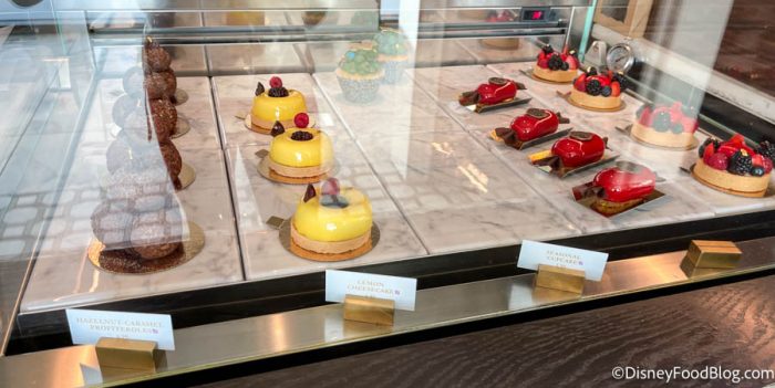 Disney’s Riviera Resort has been ready for the holidays with their decorations, and now their desserts match! This Mediterranean-themed resort is home to Le Petit Café, a small cafe that offers coffees, pastries, and more. We noticed some holiday treats have made their way into the bakery case, so we had to try!