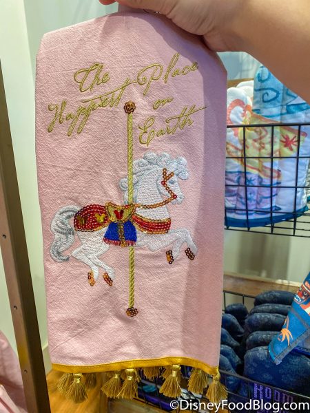 The apron itself is priced at $34.99. But, you’ll need more than just an apron if you’ll really be cooking up a feast — that’s where this cute kitchen towel comes into play! It matches the Castle and Carrousel apron and will always remind you of “the happiest place on earth.”