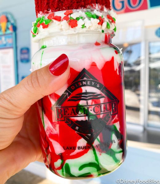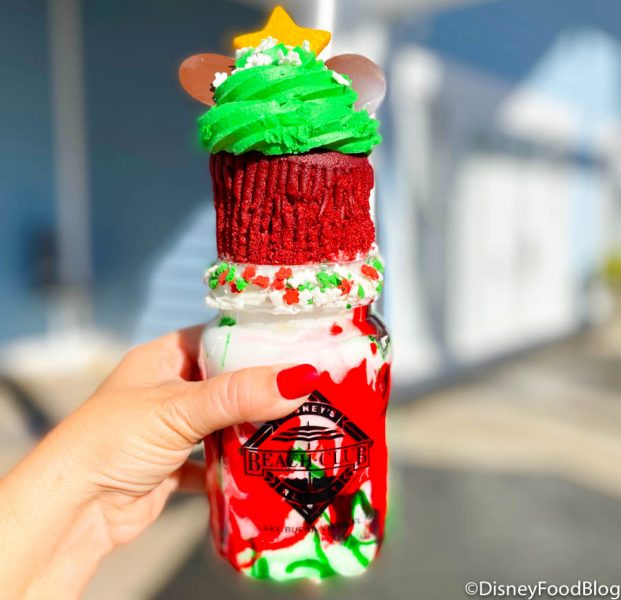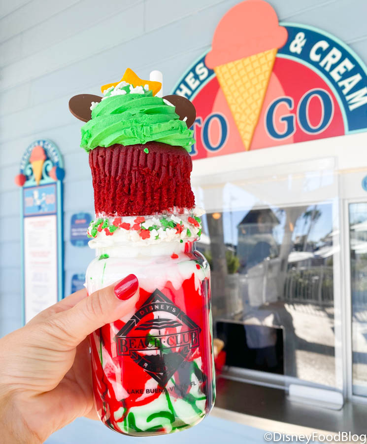 We’ve already fueled up today with a returning Christmas drink at Starbucks, the Irish Cream Cold Brew, and now we’re headed to satisfy our sweet tooth! You GOTTA see the monster holiday shake over at Disney’s Beach Club Resort!