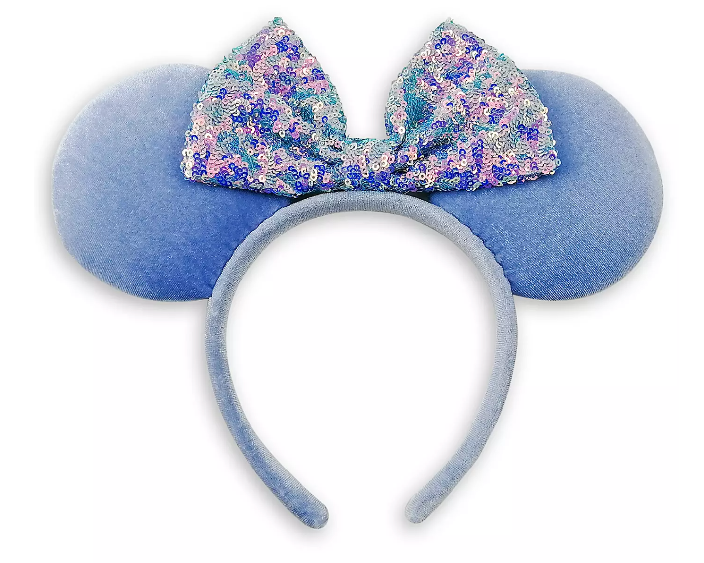 The soft velour ears are that pretty light blue color and the bow is COVERED in sequins. What a classic and pretty style! We think Minnie Mouse would definitely approve.
