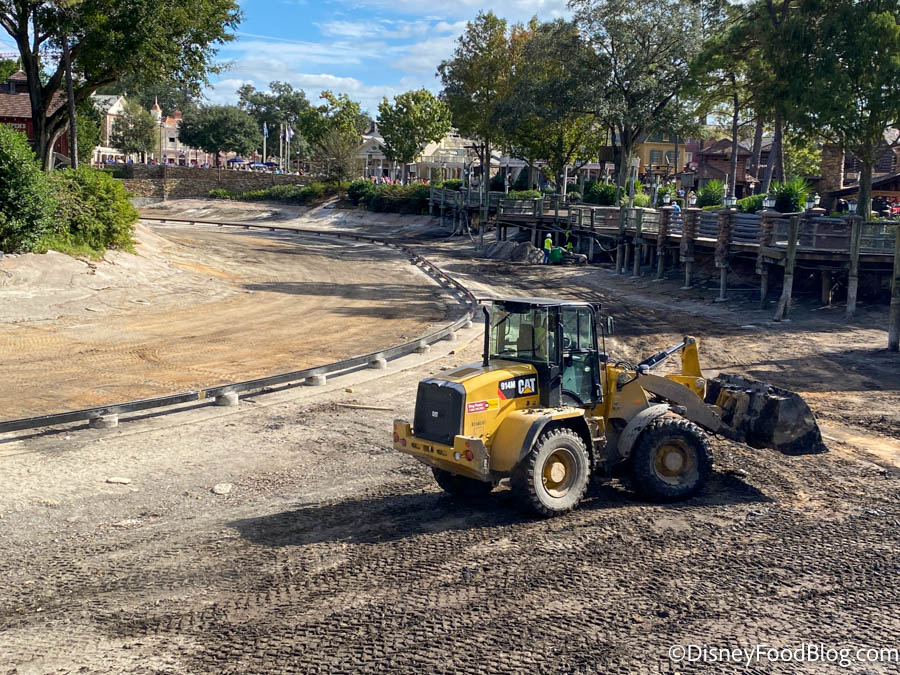 We may not notice what was updated when the construction is finished, but the area is undergoing some major refurbishments. The track for Liberty Square Riverboat is exposed, and we’ve spotted Cast Members working in the area.