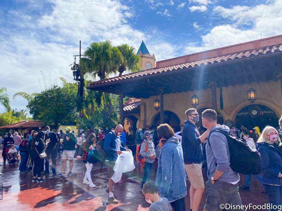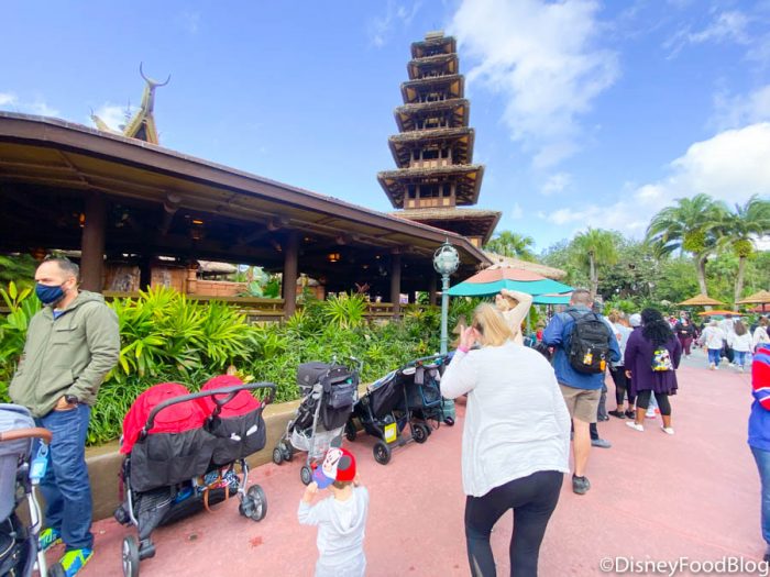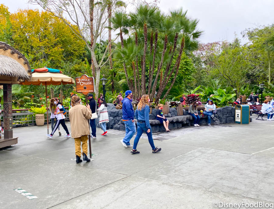 You can see that the Jungle Cruise line is extended alllllllll the way down past the benches in front of Sunshine Tree Terrace.