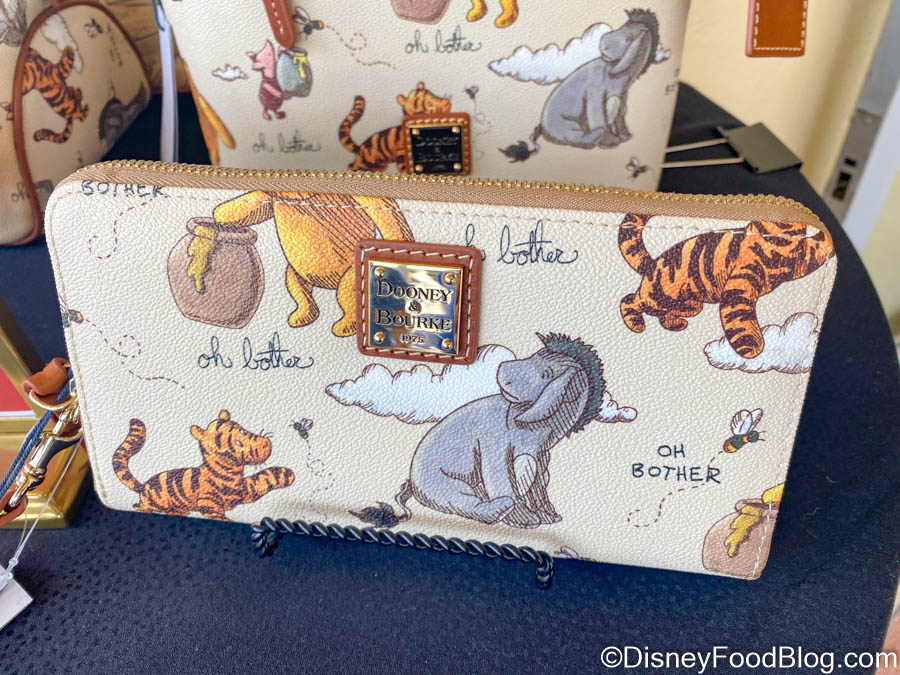 Recently we’ve seen collections based on Tangled, Disney dogs and cats, and even a stunning holiday line! Despite their hefty price tag, these bags are incredibly popular among Disney fans, and they often garner a LOT of attention. Today, the new line of Winnie the Pooh Dooney & Bourke bags had appeared online, and now we have spotted them in the parks too!