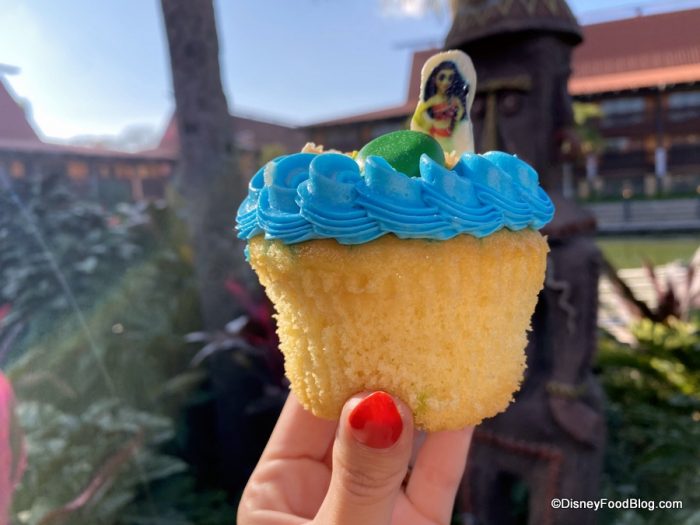 The Moana Cupcake is $5.99 at Captain Cook’s, and since it’s been around for a while now — and since it has such a fitting home at the Polynesian — we’re hoping to find it well into the New Year!