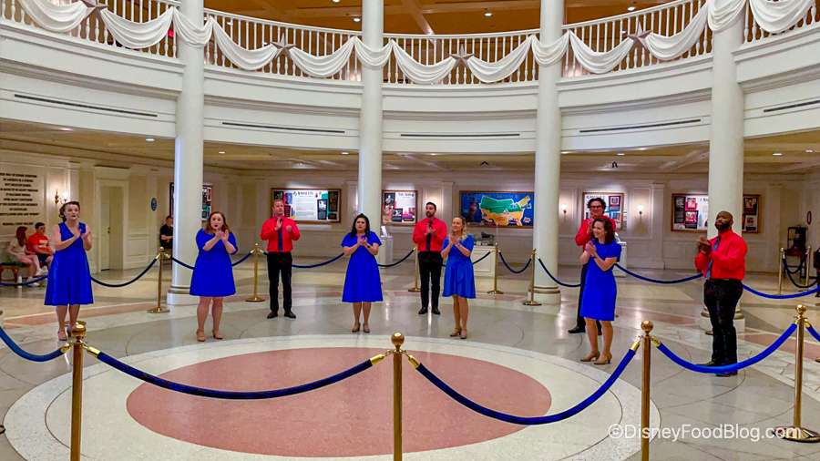 There’s actually a lot going on inside the American Adventure! If you’ve never visited the building (like a few of our team members admitted), there is a full-size theatre located inside. The theatre is actually really beautiful and houses an audio-animatronic show. The pavilion is also where you might find the renowned Voices of Liberty a capella group.
