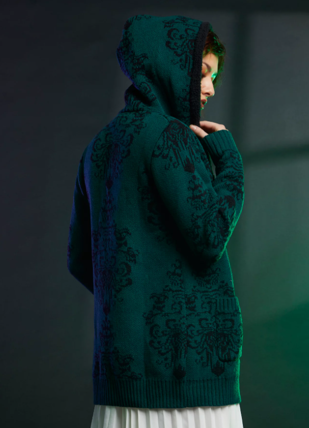 It’s officially wintertime, and that means lots of cozy, warm sweaters and jackets! To bring a little bit of “spooky” into your style, check out the Haunted Mansion Wallpaper Sherpa Cardigan. It’s got pockets AND a hood, so it’s actually pretty practical as well!
