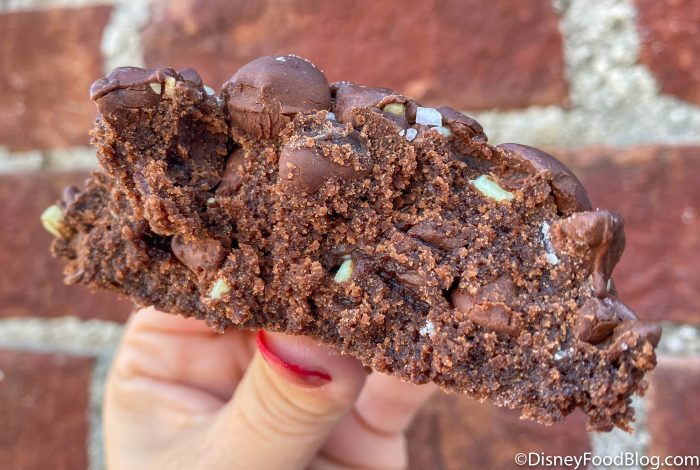Each cookie we tried today was priced at $6, which, when you think about Disney treats, this is a GOOD DEAL MY FRIENDS. I’m not gonna lie — most of our team has an average of about eight Gideon’s cookies stashed in their freezers at any given time, because they last forever and just a quarter of a Gideon’s is enough sweetness to hold you over until tomorrow. So $6 for a very shareable, unique, high-quality treat skyrockets Gideon’s to the top of our recommended snacks list already.