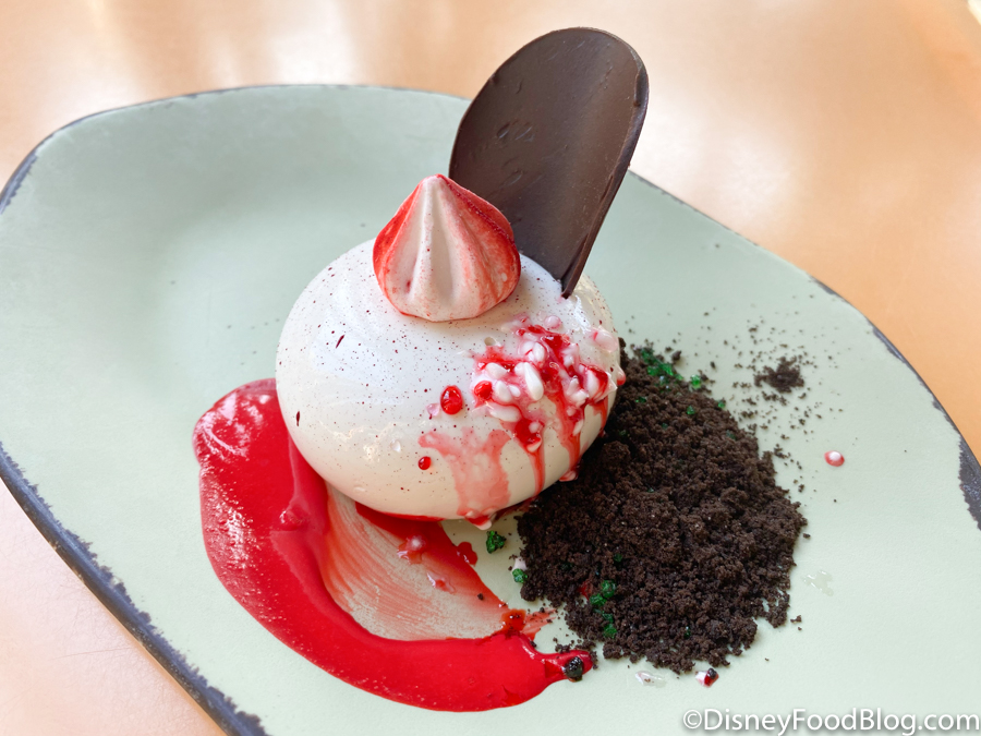 Last year, we noted that the treat had too much peppermint. We thought that the returning dessert had just the right amount of mint taste and creamy mousse to balance each other out. Disney either lightened WAY up on the mint or we’ve had enough peppermint this year so we’re more accustomed to the taste! Either way, this is one of our favorite holiday desserts we’ve had this year. And we’ve eaten A LOT of holiday treats so that’s saying something!