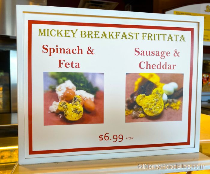 So while we were visiting BoardWalk Bakery on Disney’s BoardWalk this morning, we saw something VERY interesting — Mickey Breakfast Frittatas! Say what? Mickey-shaped eggs? We are SO in!