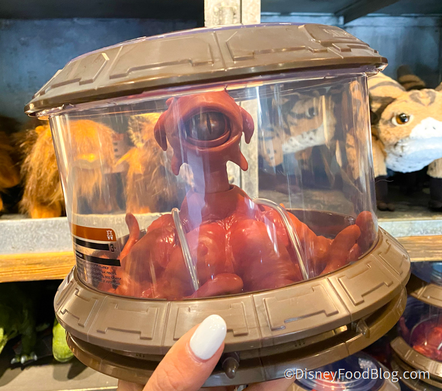 And we discovered a brand new creature there today! This one is a Dianoga Doll, which is a one-eyed tentacled beastie best known for its appearance in the trash compactor scene of Star Wars: A New Hope. But you can also spot it in Star Wars: Galaxy’s Edge near the water fountains!