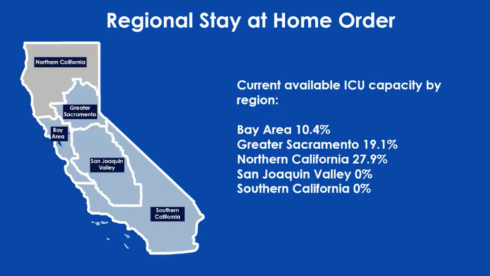 California Governor Gavin Newsom has implemented a system where “Stay-at-Home” orders are put in place in regions within the state once that particular area falls below 15% ICU capacity.