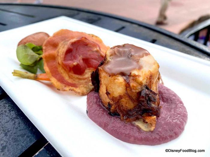 - Coq au Vin: Chicken Roulade with Violet Mustard, Candied Carrots, Pancetta Crisp, Marble Potatoes and Beurre Rouge Sauce – $6.75, DDP Snack Eligible