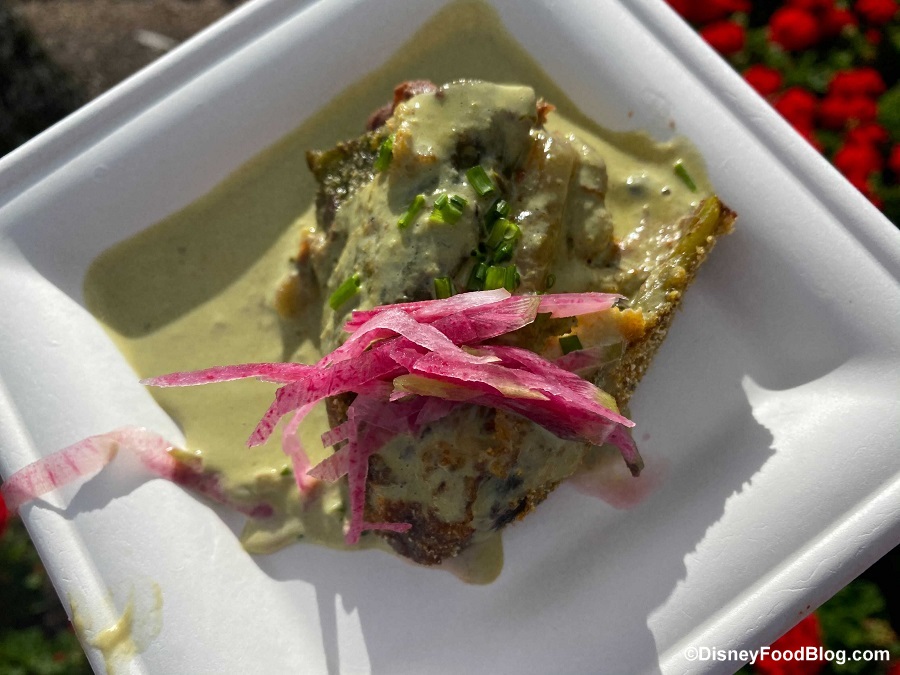- Pork Belly Pastor: Pastor-marinated Pork Belly atop Boniato Purée with Charred Pineapple and Crispy Cilantro (Gluten/Wheat Friendly) – $7.50, DDP Snack Eligible