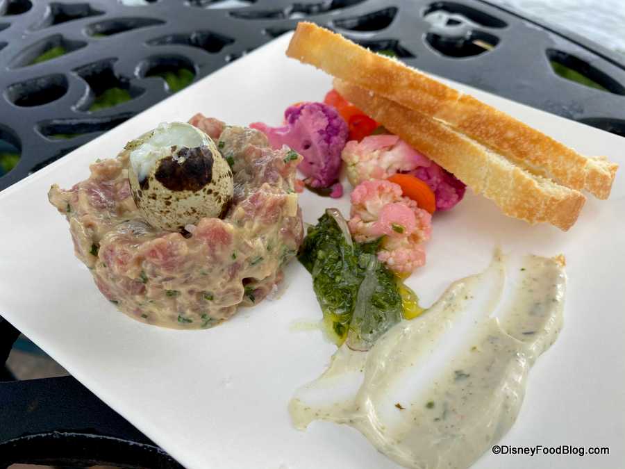 - Prime Steak Tartare with Pickled Vegetables, Parsley Salad, Béarnaise Anglaise and Sous Vide Quail Egg — $8.50, DDP Snack Eligible