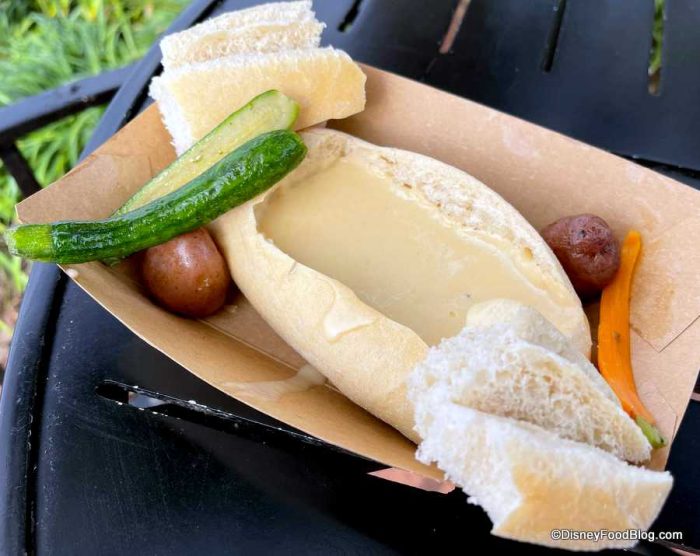 - Cheese Fondue in a Bread Bowl with Steamed Baby Vegetables and Marble Potatoes – $8.25, DDP Snack Eligible
