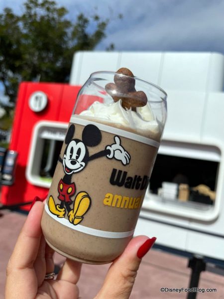 - Annual Passholder-exclusive Cup — available for purchase with Gingerbread Milkshake, exclusively for Disney World Annual Passholders — $4.50 including non-alcoholic Gingerbread Milkshake