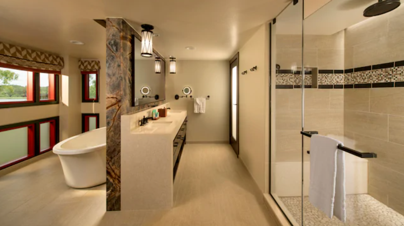 With a stay at one of these rooms, your family will be living in the lap of luxury while also having plenty of room for everyone to spread out and have their own space. Just look at how massive this bathroom is!