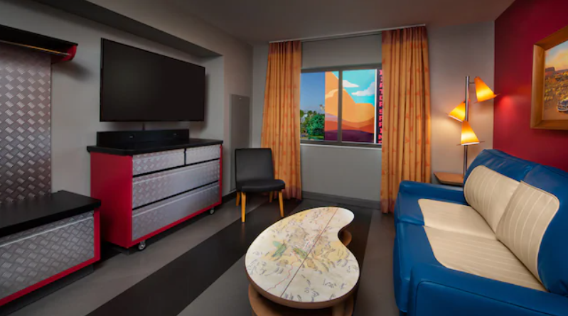 There are so many fun details in these rooms, from the ocean-based color scheme and art in the Finding Nemo suites to the toolbox dressers and traffic cone lamps in the Cars suites.