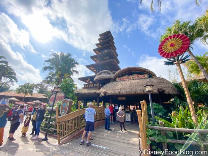 The set-up is similar for Walt Disney’s Enchanted Tiki Room, where certain rows are blocked off, and even on rows that are being utilized, certain areas are marked as unavailable.