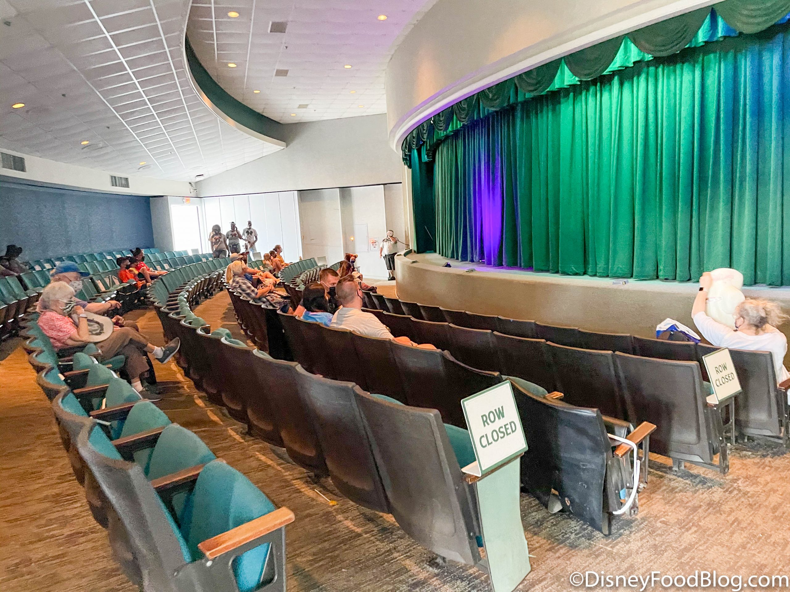 Just like at other theaters in Disney, essentially every other row is closed and some seats within available rows are marked as unavailable to maintain social distancing. Keep in mind, this might mean that you’ll have to split up your party as the seats marked as unavailable cannot be used.