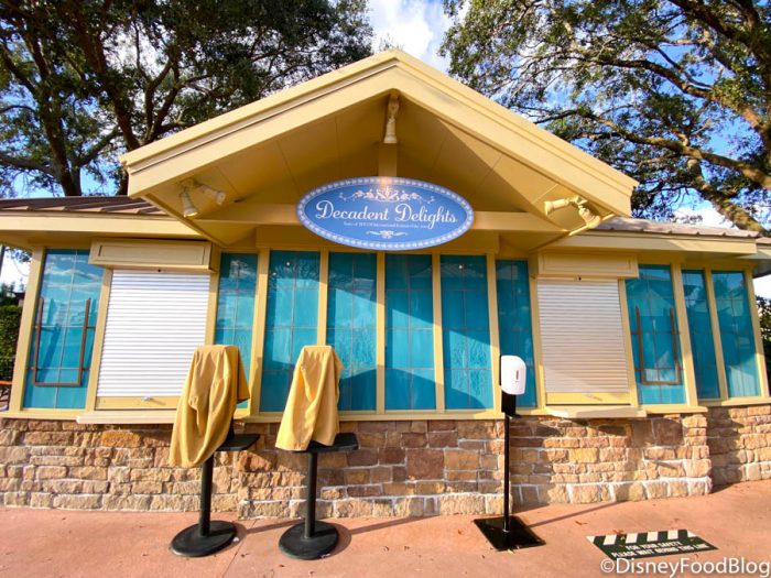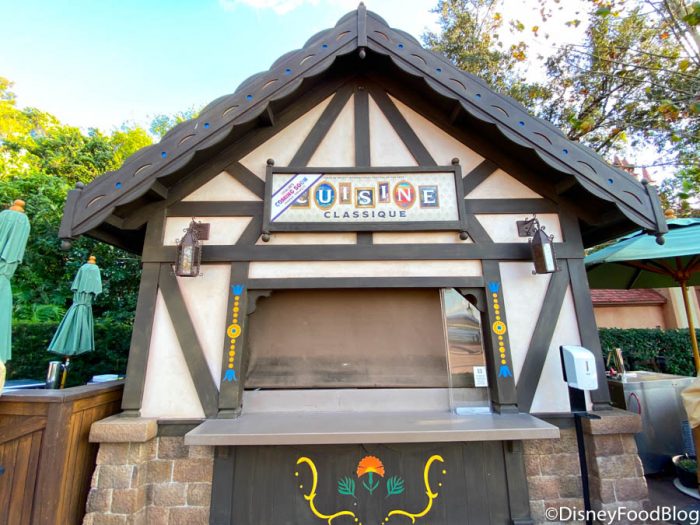 Let’s take a tour of the booths we spotted today! Now, as we mentioned, Festival of the Holidays just wrapped up so many of these are the same booths with new signage for the new fest. Cuisine Classique in the Germany pavilion is where we’ll find red wine-braised short rib, coq au vin, and opera cake. Yum!