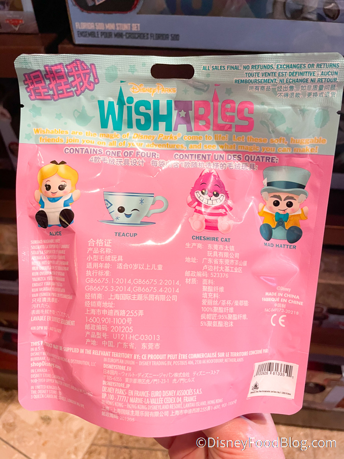 Blind packs contain one of six plushes, including Alice, an Aqua Teacup, the Cheshire Cat, and Mad Hatter!