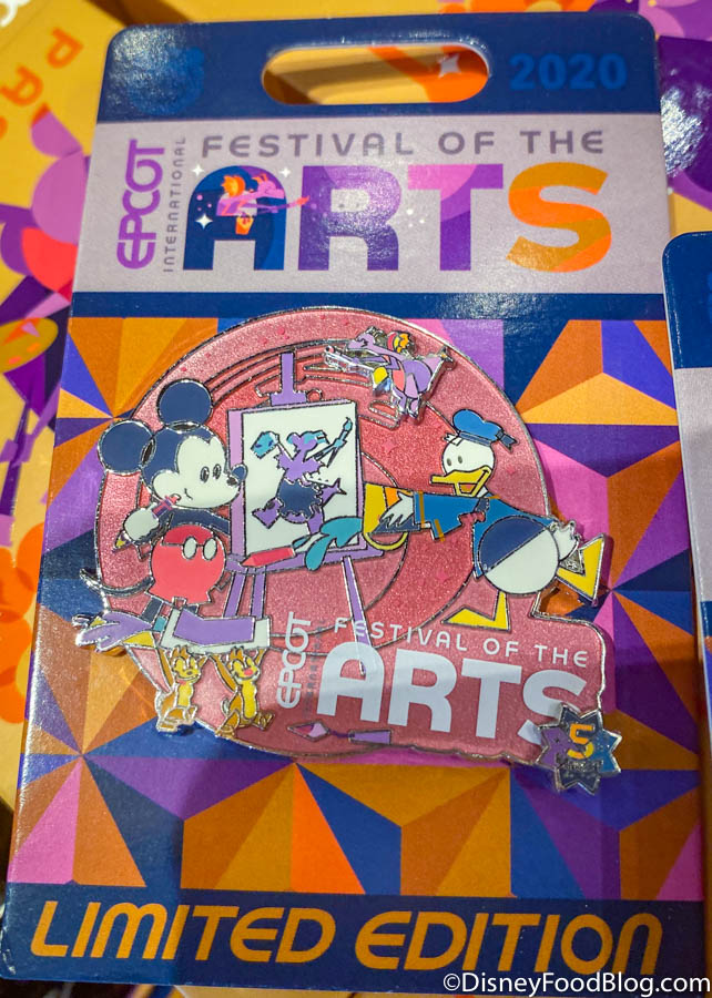 This Festival of the Arts Pin is $15.99. Also, we just realized that the packaging for the pins says 2020, but the pins themselves do say 2021. OOPS!