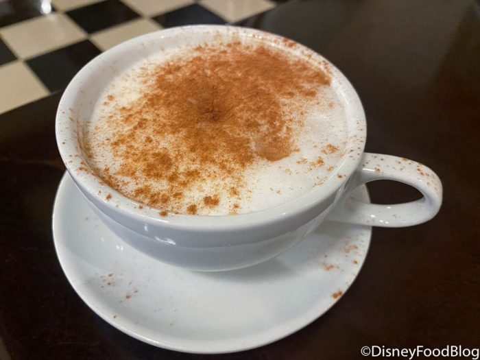 Since this location offers specialty coffee (espresso, a latte, or cappuccino), we decided to grab a Latte with cinnamon dusted on top.