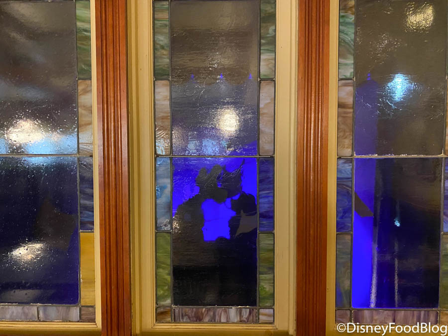 It’s clear in the design that there is a lot of inspiration from the iconic Disney film. Through this stained glass window, you can see the silhouettes of the two main characters sharing that sweet spaghetti moment!