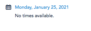 It appears to show “no times available” for this experience all the way through the end of the calendar, which (right now) is March 23rd.