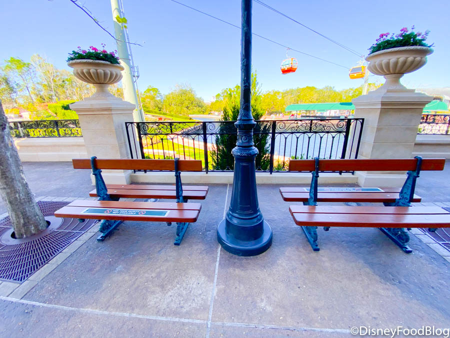 Here’s a glimpse of the new benches for the area — complete with distancing markers.