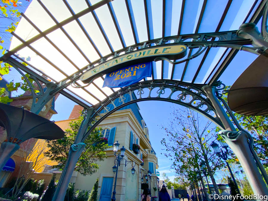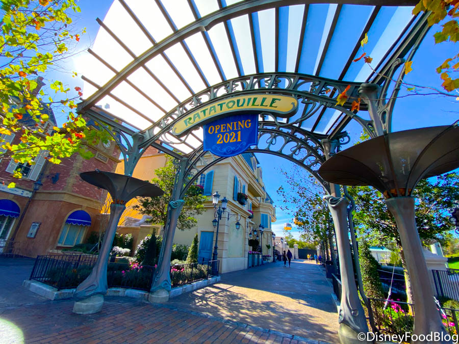 Remy’s Ratatouille Adventure, La Creperie de Paris, and the rest of the France Expansion are set to open sometime this year — but we’re not sure WHEN. We noticed that walls were down near the Ratatouille sign last week, and now we actually got to walk into part of the expansion!