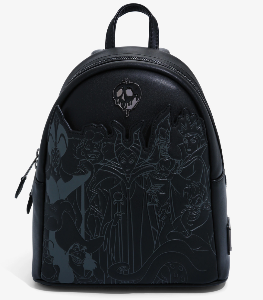 Calling all Disney villain fans! This bag is your dream (or nightmare) come true! The Disney Villains Full Cast Mini Backpack features Ursula, Maleficent, Jafar, Captain Hook, and several others.