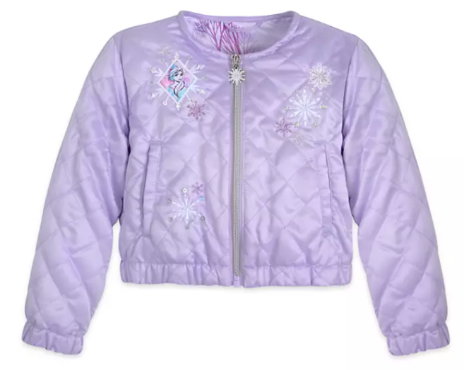 There’s also a Frozen 2 quilted jacket. This purple is a bit more pastel and has delicate embroidered snowflakes.