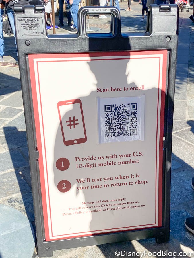 To sign up for the virtual line, all you need to do is scan the QR code on the sign, enter your phone number, and you’ll receive a test when it’s your time to return and shop!