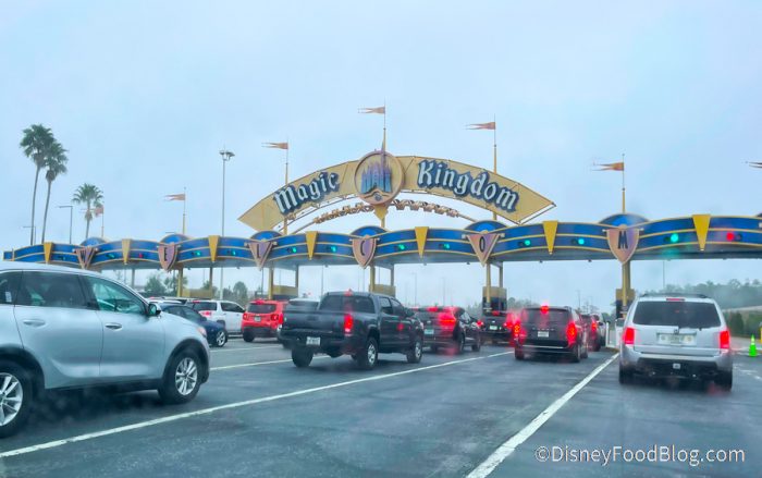 So let’s start with this morning, when we were on our way! As you can see, the other Disney World entrance is still getting its new paint job. But we still get goosebumps every time we drive through it!