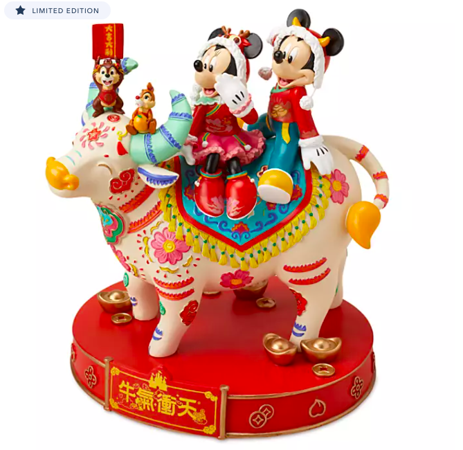 The Mickey Mouse and Friends Lunar New Year Statue is limited edition, and we love the intricate level of detail! Mickey, Minnie, Chip, and Dale are sitting atop an ox, and characters along the base of the statue read “Your luck raising all the way to the sky.”