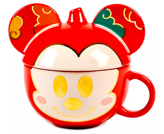 The back of the mug and lid, as well as the inside, are solid Mickey-shorts red. This mug is $19.99.