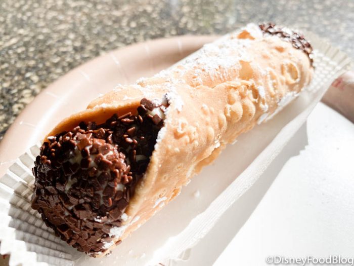 With only one dessert option, we tried the Cannoli. In the filling, we noticed orange zest and tons of chocolate chips.