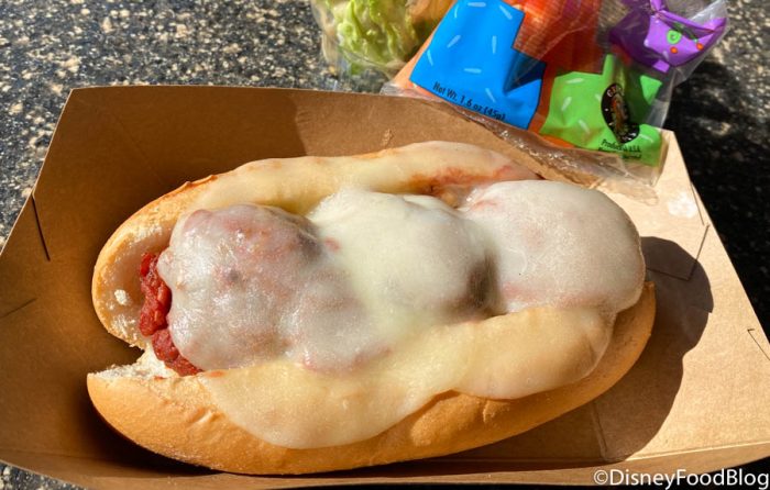 After the pizzas, it was time to try the Meatball Sub! This is made with a Hoagie Roll stuffed with Seasoned Meatballs, Marinara Sauce, Provolone, and a choice of one side.