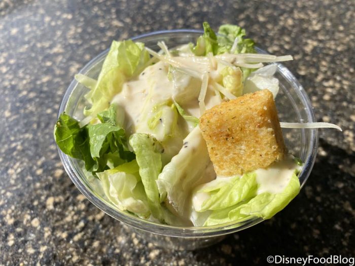 The Side Caesar Salad was also generic, but in a better way than the pizza. It was the perfect size when paired with a pizza, and it’s nice to have a lighter side option as opposed to french fries. We wouldn’t go out of our way to order this on its own, but it helped counteract the “we ate two giant balls of dough” feelings from the pizza!