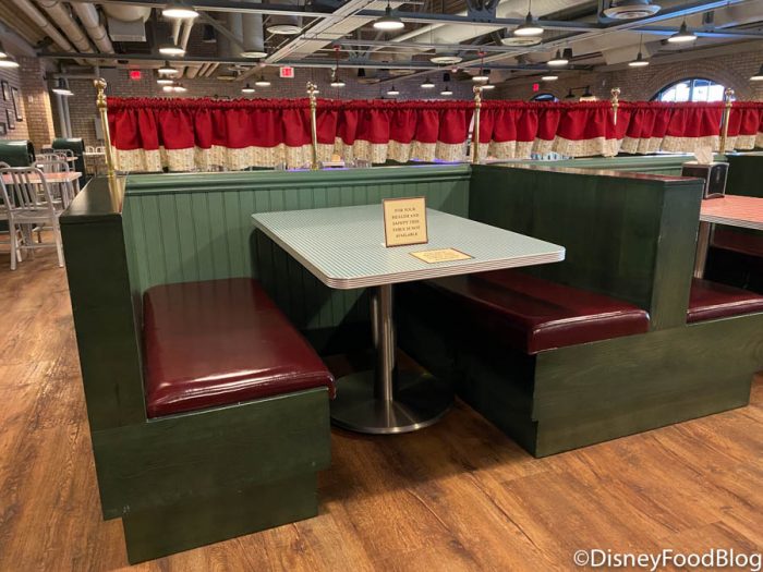 Right now, in order to enter the restaurant, guests must place a Mobile Order through the My Disney Experience app. Disney does make it easier by adding a sign with a QR code to scan outside, if you don’t want to find it yourself. By using Mobile ORder, guests can make their selections, pay, and pick up their order once it’s ready. You can check out our step-by-step tutorial for Mobile Order here.