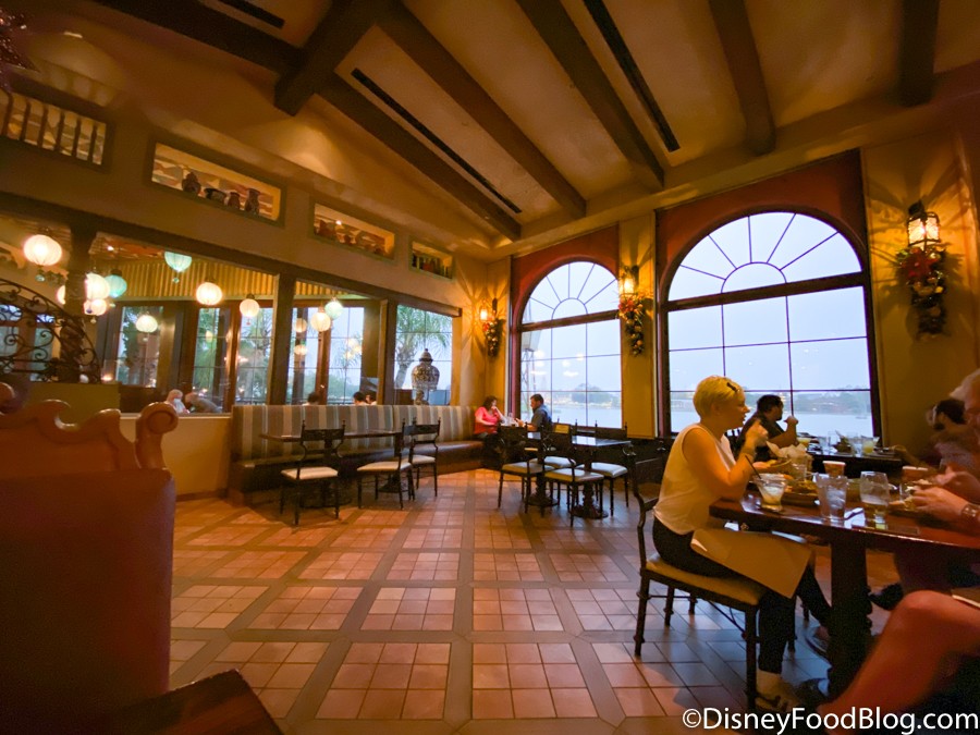 The huge windows offer a spectacular view of World Showcase Lagoon. La Hacienda used to be a majorly sought-after restaurant to book during Illuminations. Disney would pipe in the music and dim the lights so you could enjoy the show as much as possible. Scoring a table RIGHT at the glass during showtime was a big deal. We imagine it will be just as popular when the new nighttime water show, Harmonious, debuts soon.