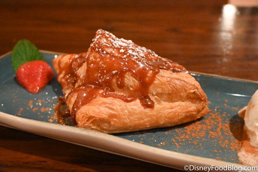People who love caramel apples will love this dessert! Likewise, people who don’t love the taste of cinnamon and caramel may want to skip it! We don’t always go out of our way for dessert at sit down meals in Disney World but we were not mad we ate this again. 🙂
