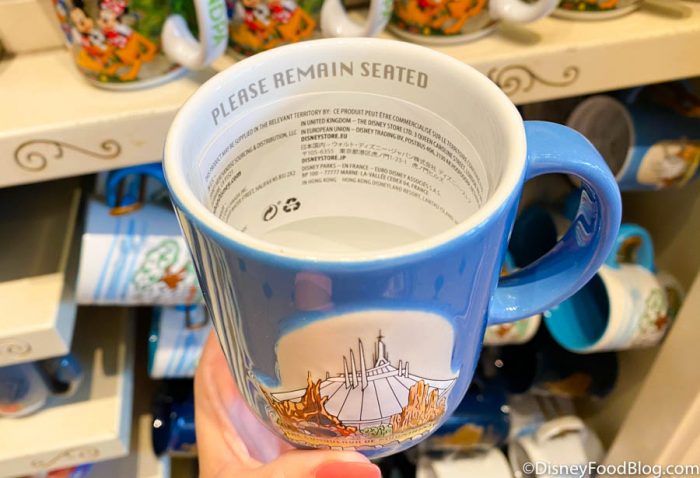 The inside rim of the mug reads “Please Remain Seated.” We love this added touch — it makes us feel like we’re in the parks while we sip our morning coffee!