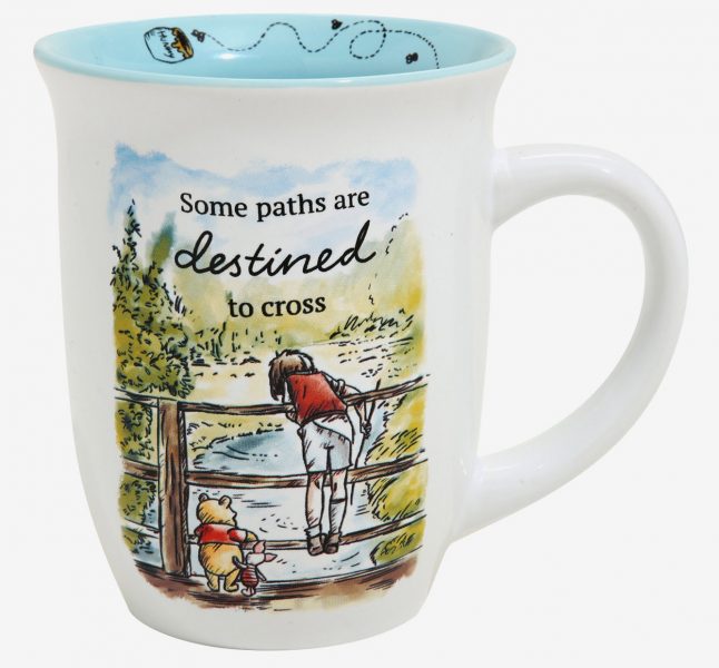 If you are still looking for MORE mugs you can also snag this beautiful one featuring Winnie the Pooh, Piglet, and Christopher Robin. The mug is from early 2020, so it’s not new, but it is very cute. On the mug, Pooh and his friends are looking into the water below them with the phrase “Some Paths are Destined to Cross” above them. This could be a great gift to give to someone special in your life whose path you felt you were just destined to cross.