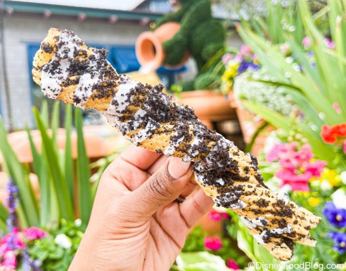 Yeah, Disney, you can’t fool us. This is just a regular churro in disguise! If you’re looking for something more outside-the-box, we really enjoyed the Oreo Churro we tried here recently.